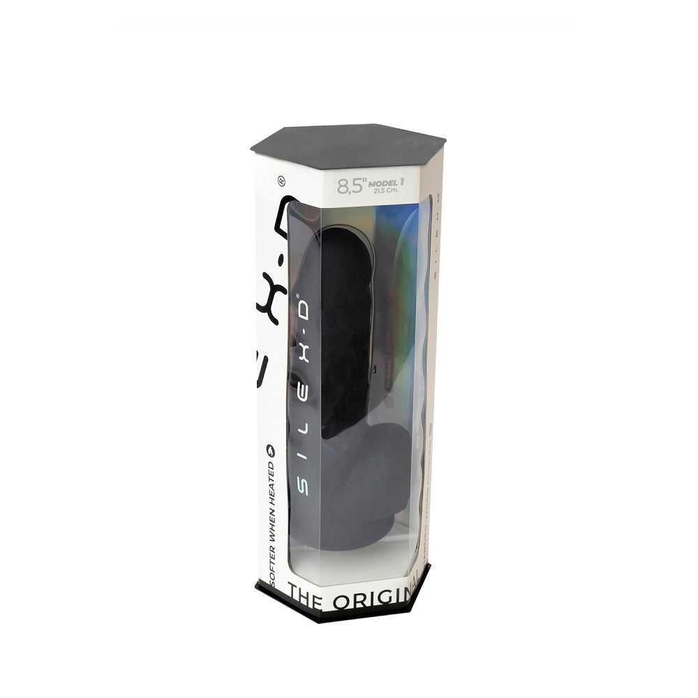 SilexD 8.5 inch Realistic Silicone Dual Density Girthy Dildo with Suction Cup with Balls Black
